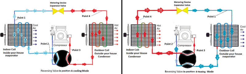 Before I get into Geo Heat Pumps, let me back up a bit. The coolest thing about a heat pump (whether it is Ground, Air or Water Sourced) is that it is basically a two-way air conditioner. Air conditioning units work by removing heat from inside a space and putting it “outside” or somewhere else where the heat doesn’t bother anyone. The evaporator (inside unit) absorbs the heat, and the condenser (outside unit) gets rid of it. A heat pump uses reversing valves to actually reverse the process, making the condenser able to absorb heat and evaporator able to give off heat inside so that it can heat OR cool a space. Pretty great right? A traditional rooftop unit or split AC unit can’t do that.