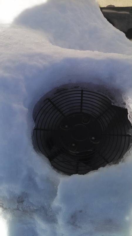 Keeping your condenser clear of snow is important. However, when shoveling out your condenser, USE CAUTION. Try not to actually touch the condenser with the shovel, or cause the snow to smoosh into the sides of the unit. You’ll notice that a condenser has a series of delicate-looking fins, some protected by a metal grid, some not. These fins are how the condenser transfers heat. These fins need to be clean, clear of debris/snow/etc. and undamaged in order to work. So no smashing the coils with a shovel, OK?